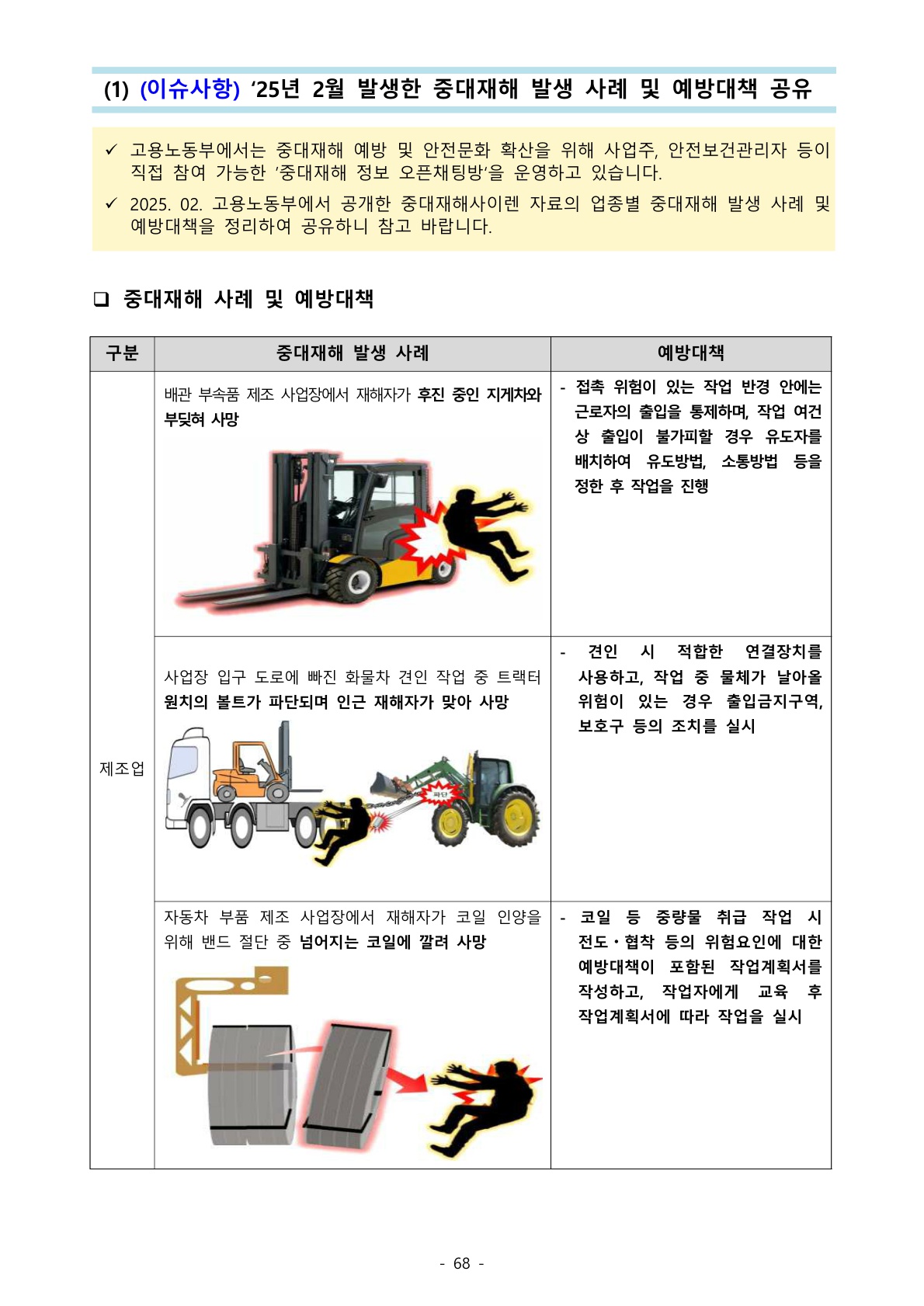 1105_산업안전보건법 (이슈사항) ‘25년 2월 발생한 중대재해 발생 사례 및 예방대책 공유 본문