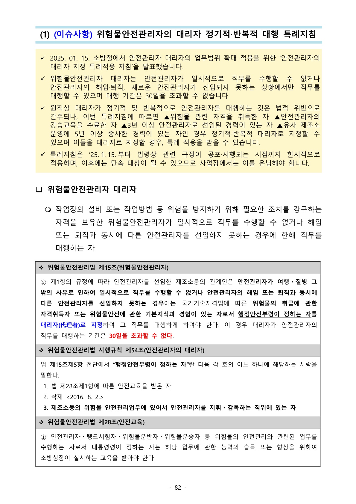 1107_위험물안전관리법 (이슈사항) 위험물안전관리자의 대리자 정기적‧반복적 대행 특례지침 본문