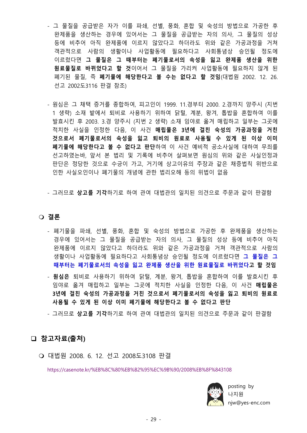 1129_폐기물관리법 (판례) 폐기물관리법상 폐기물을 혼합한 후 폐기물의 속성을 잃었을 경우 폐기물관리법 위반죄가 성립하는지에 해당하는지 여부 본문