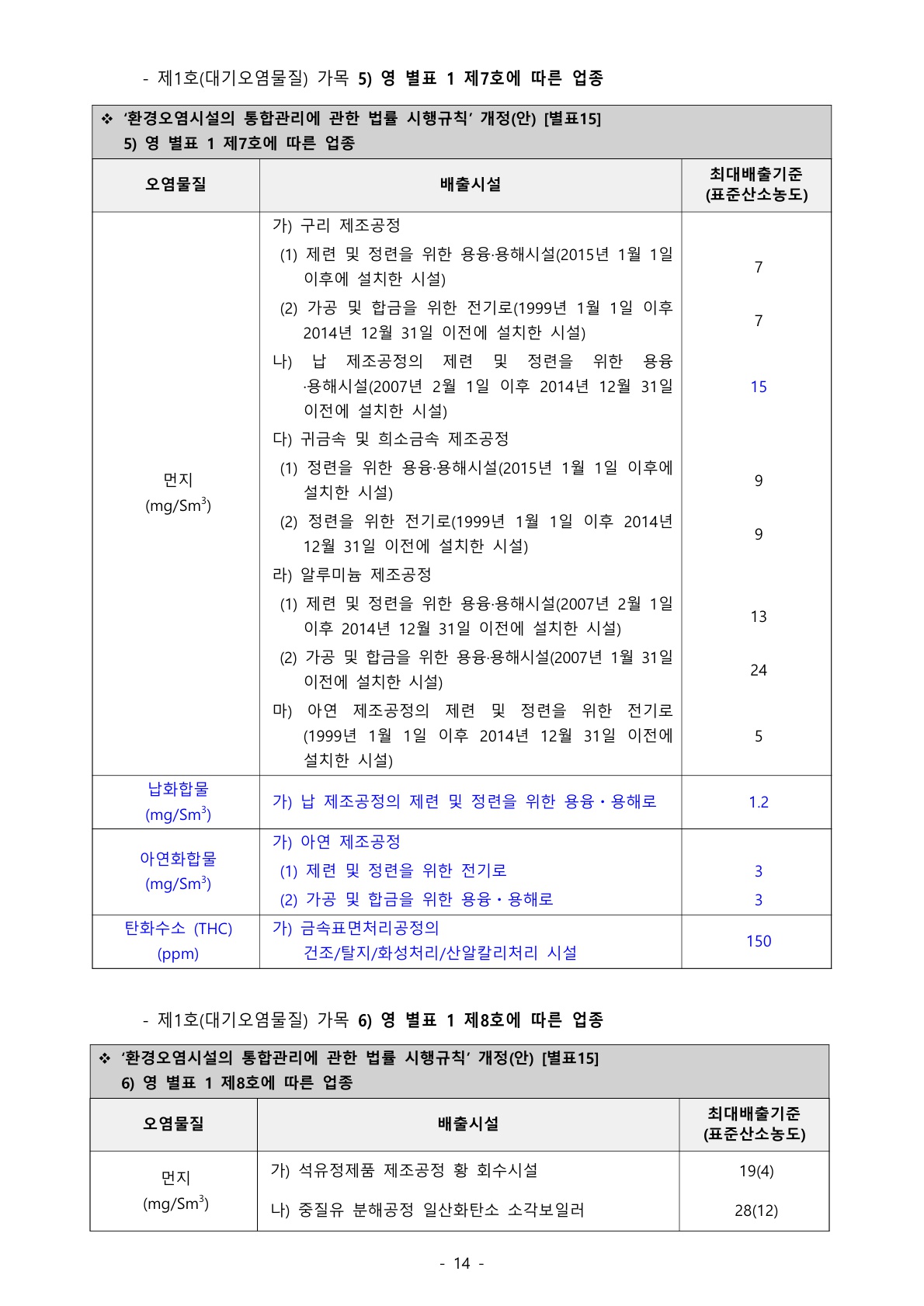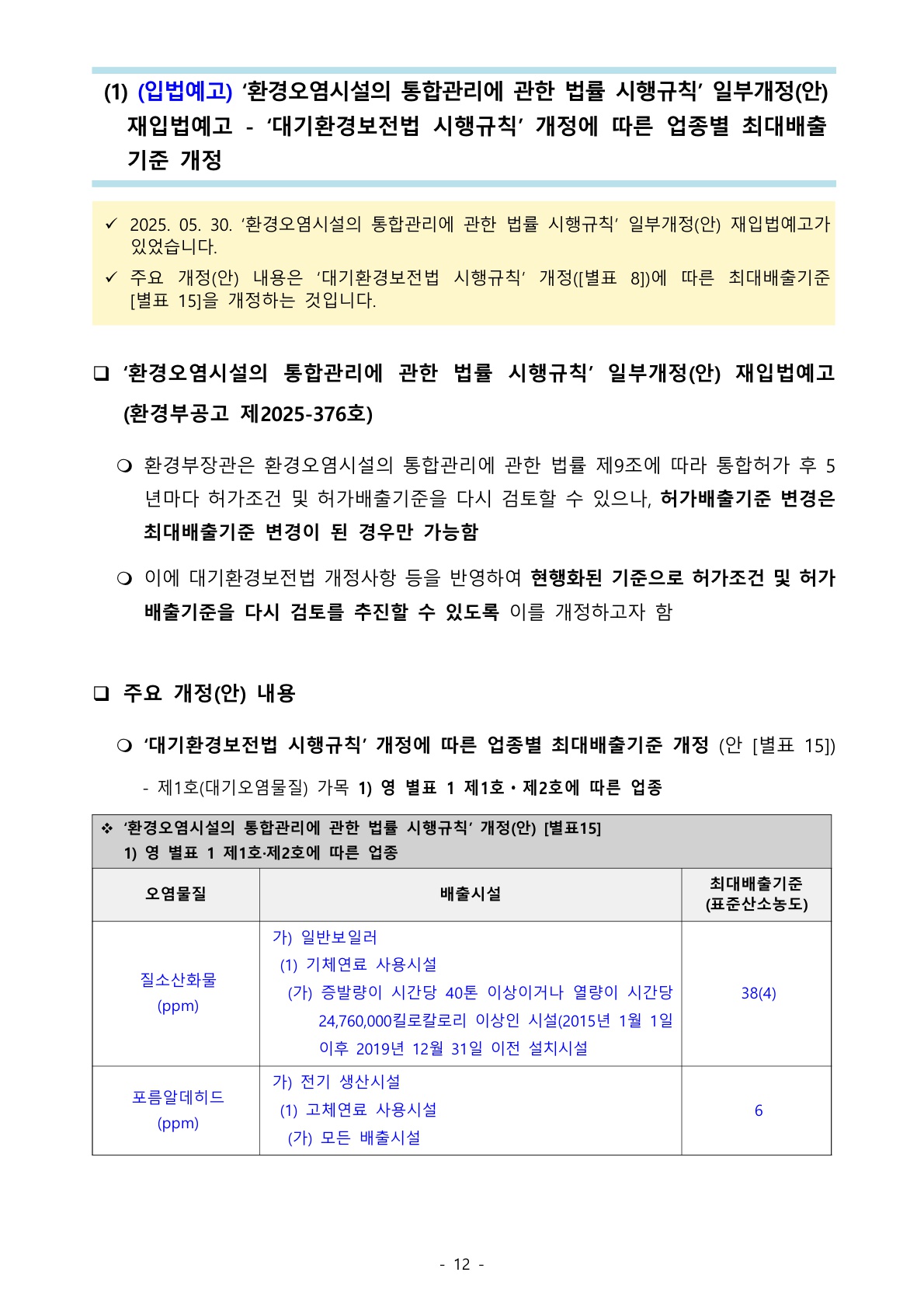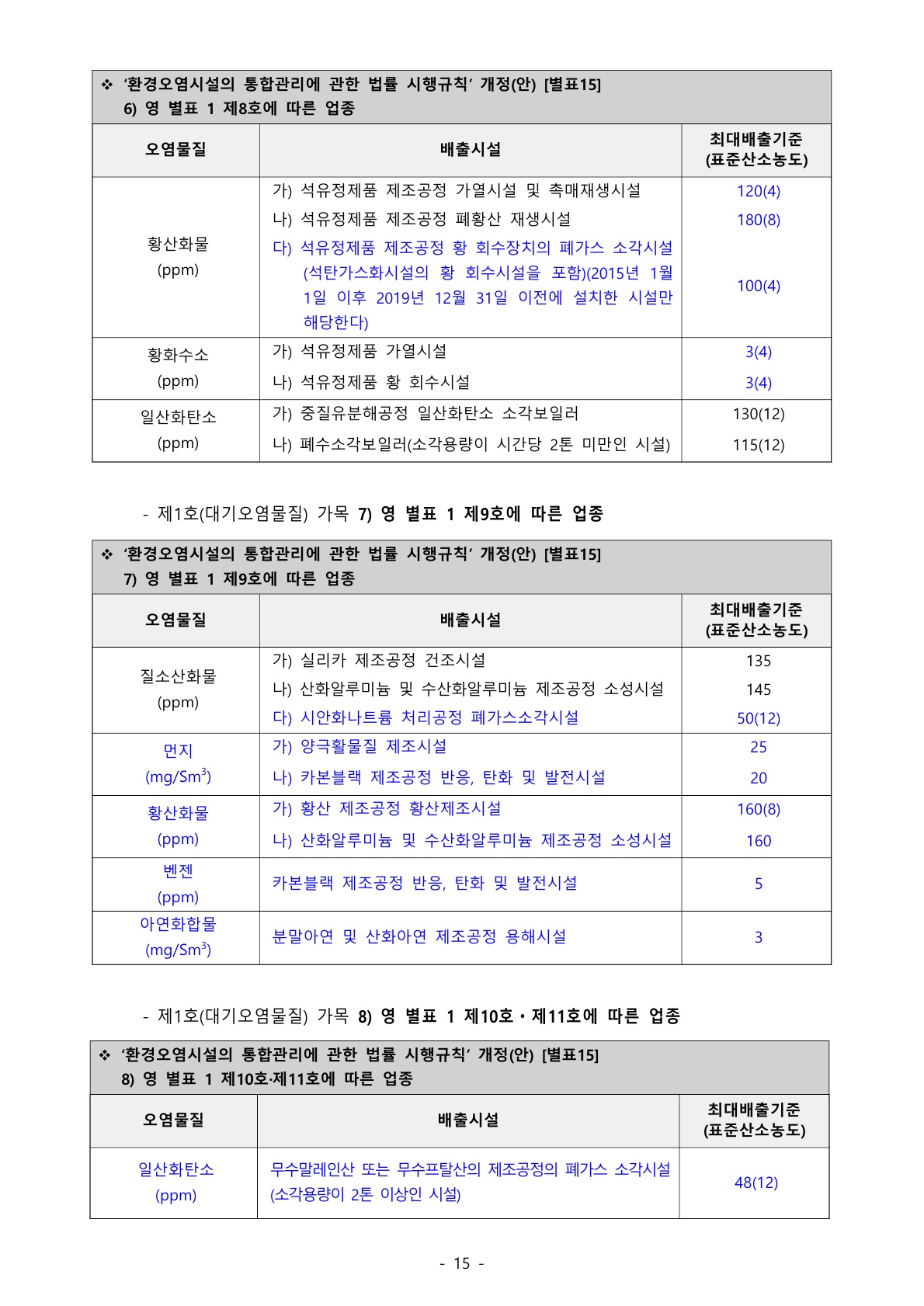 1138_환경오염시설법 (입법예고) ‘환경오염시설의 통합관리에 관한 법률 시행규칙’ 일부개정(안) 재입법예고 - ‘대기환경보전법 시행규칙’ 개정에 따른 업종별 최대배출 기준 개정