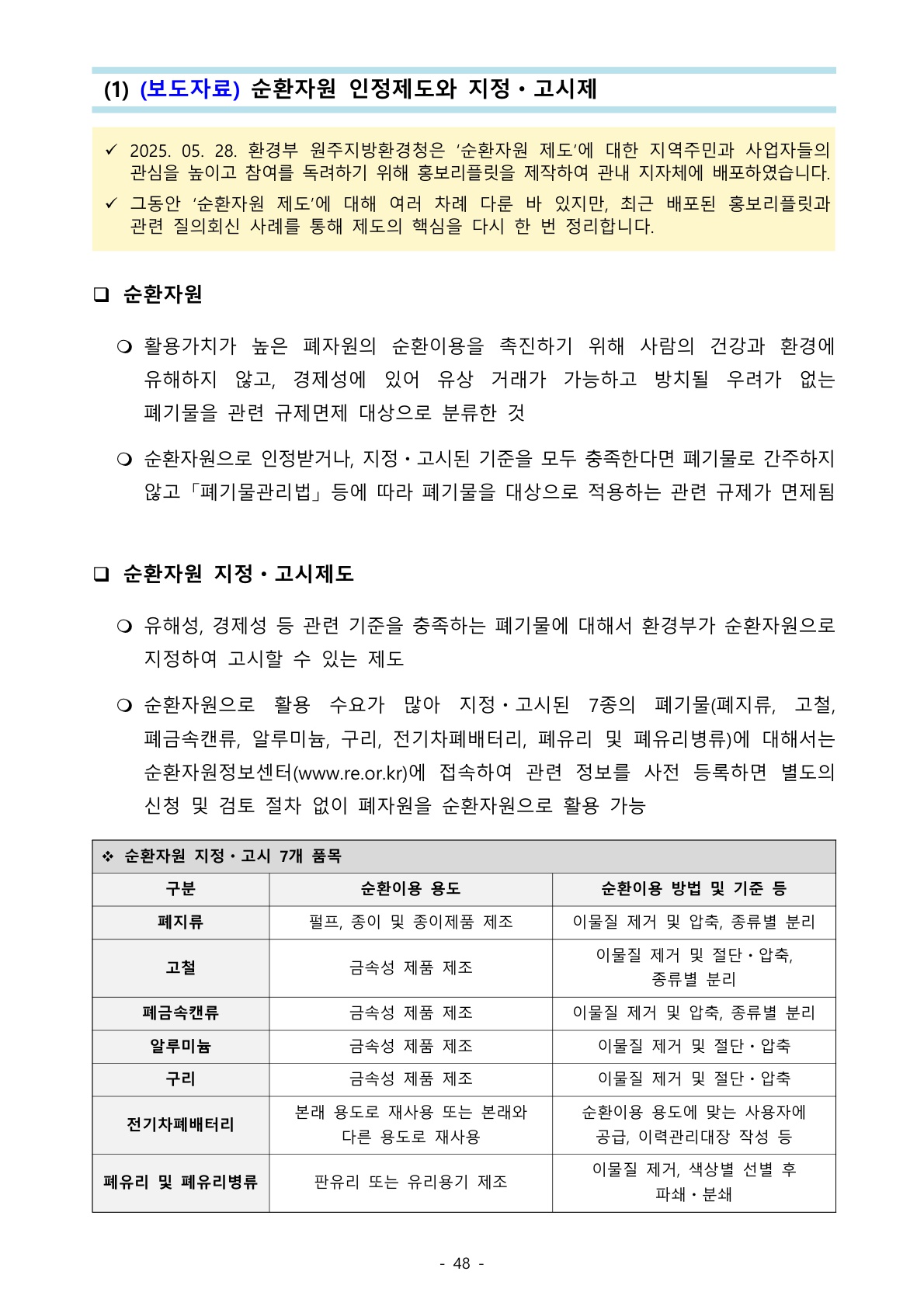 1147_순환경제사회법 (보도자료) 순환자원 인정제도와 지정ㆍ고시제 본문