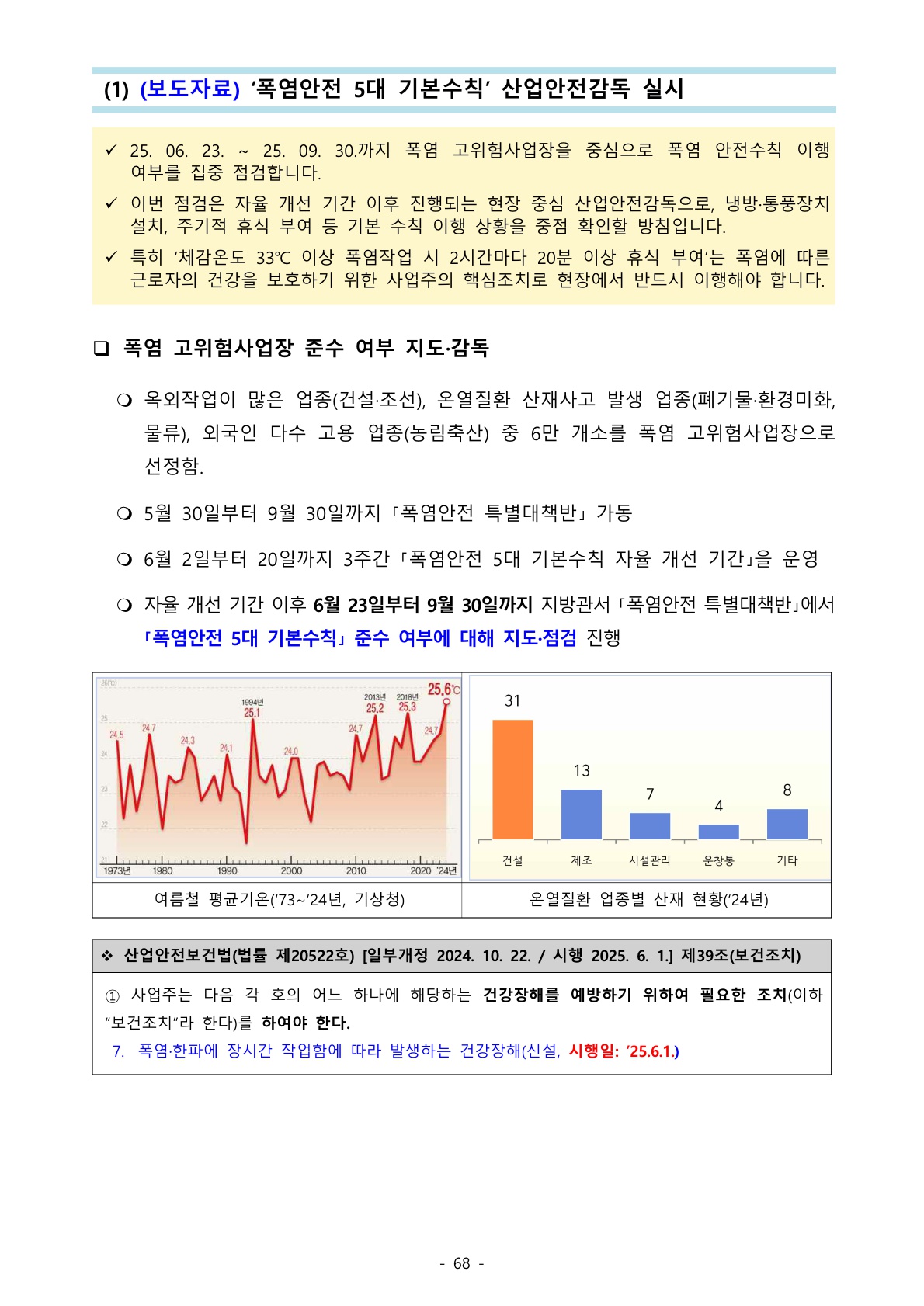 | 1154_중대재해처벌법 (보도자료) ‘열사병 사망‘ 노동자 안전조치 미흡 원청 대표에 징역형 집행유예 (0) | 2025.12.01 |