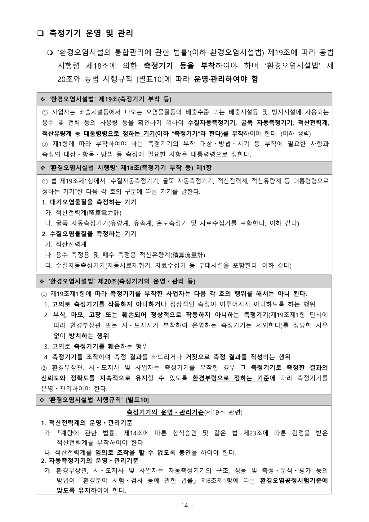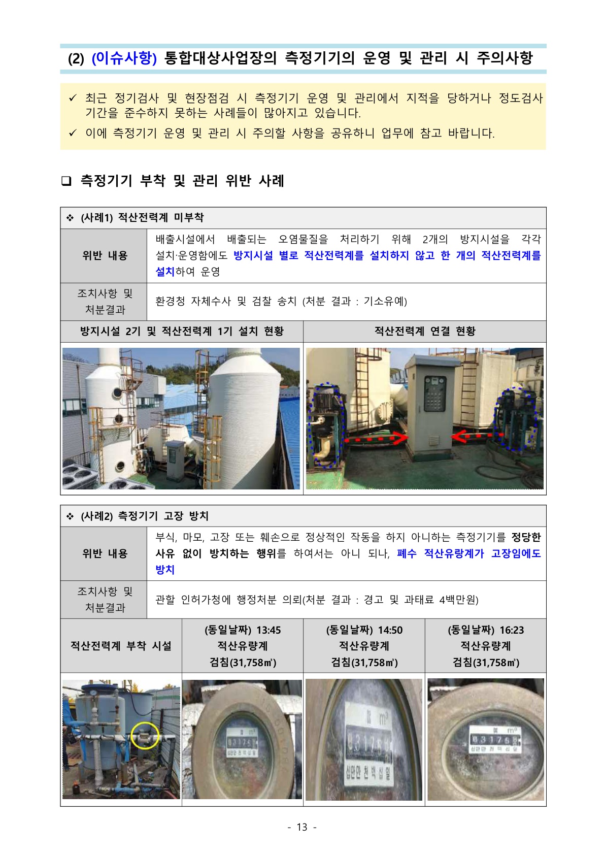 1156_환경오염시설법 (이슈사항) 통합대상사업장의 측정기기의 운영 및 관리 시 주의사항 본문