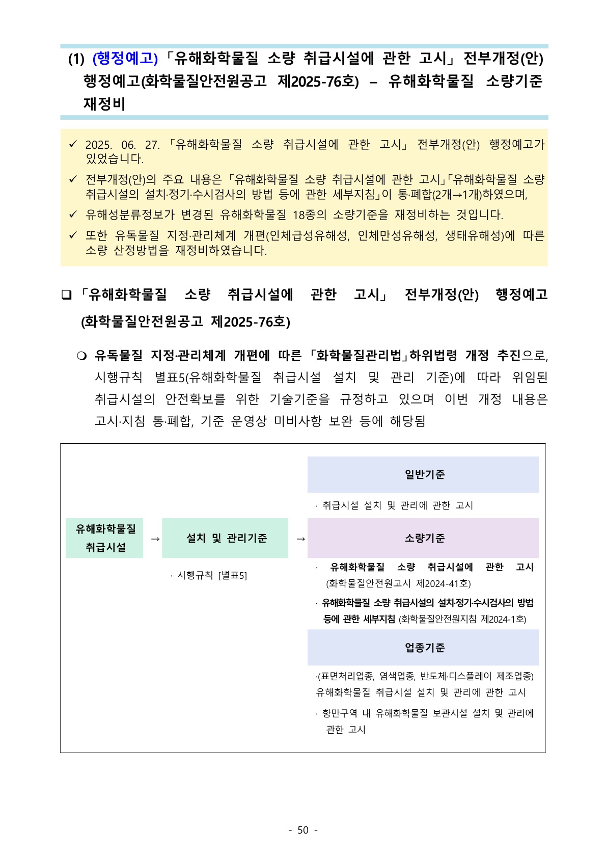 1165_화학물질관리법 (행정예고) 「유해화학물질 소량 취급시설에 관한 고시」 전부개정(안) 행정예고(화학물질안전원공고 제2025-76호) – 유해화학물질 소량기준 재정비