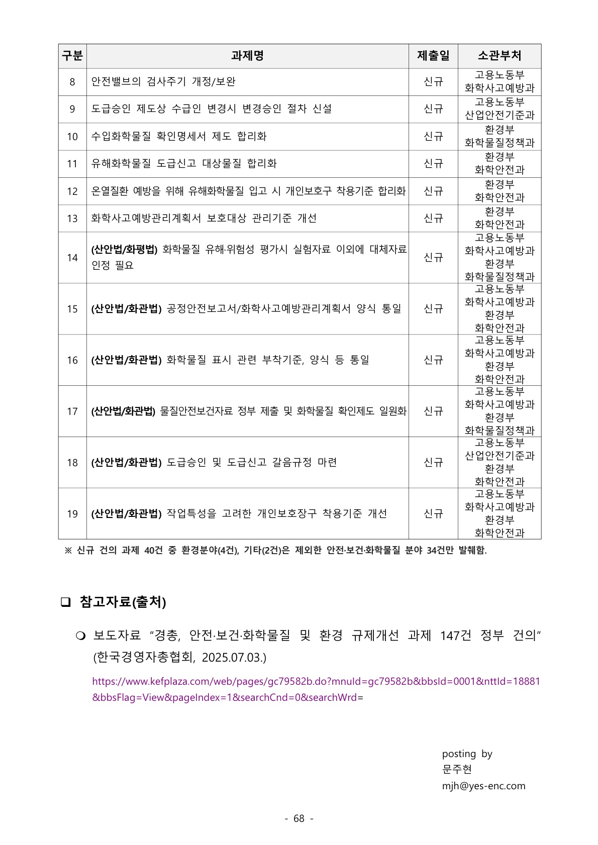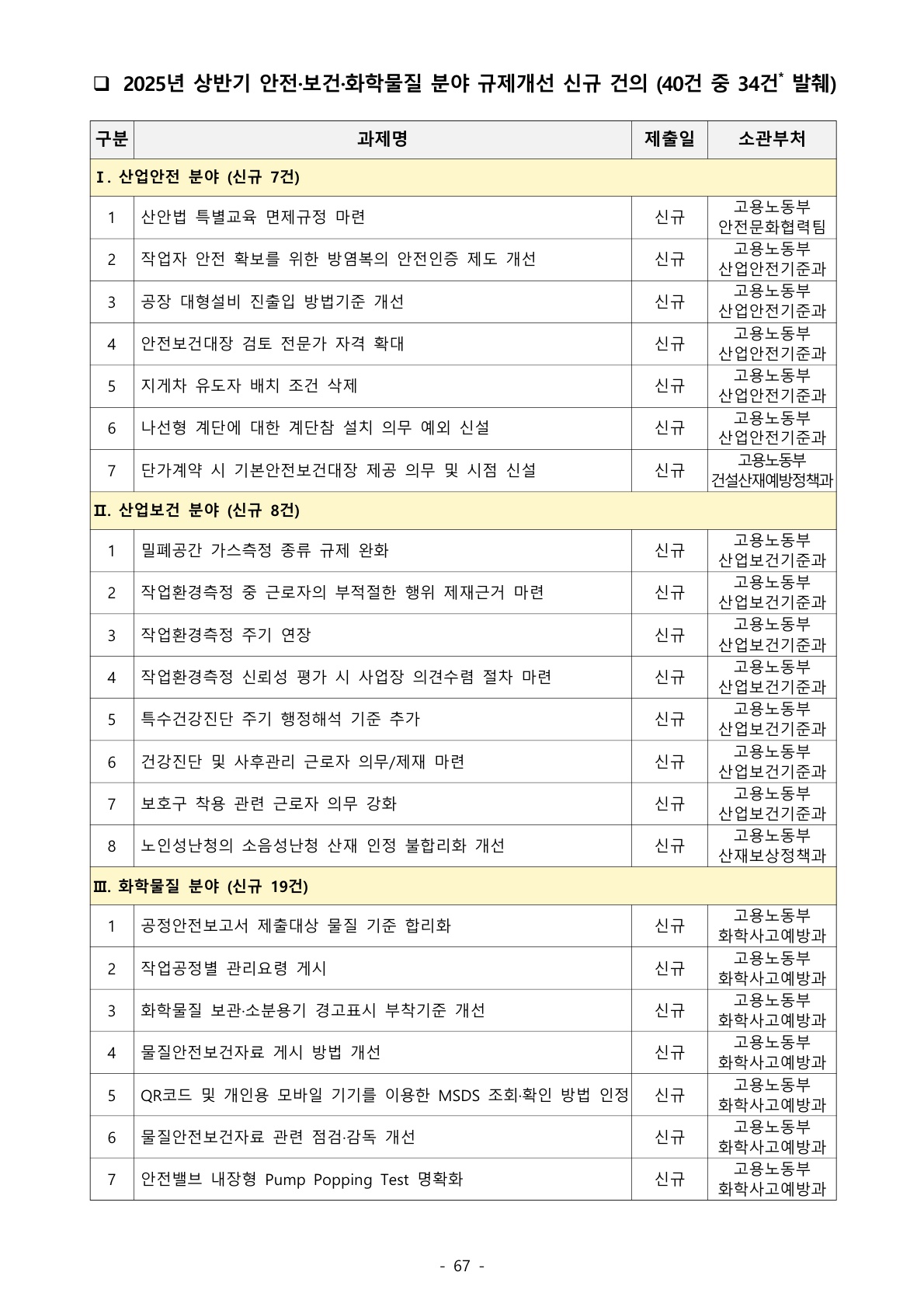 1169_산업안전보건법 (이슈사항) 한국경영자총협회 2025 상반기 안전·보건·화학물질 분야 규제개선 과제 건의 – 작업특성을 고려한 개인보호장구 착용기준 개선 등