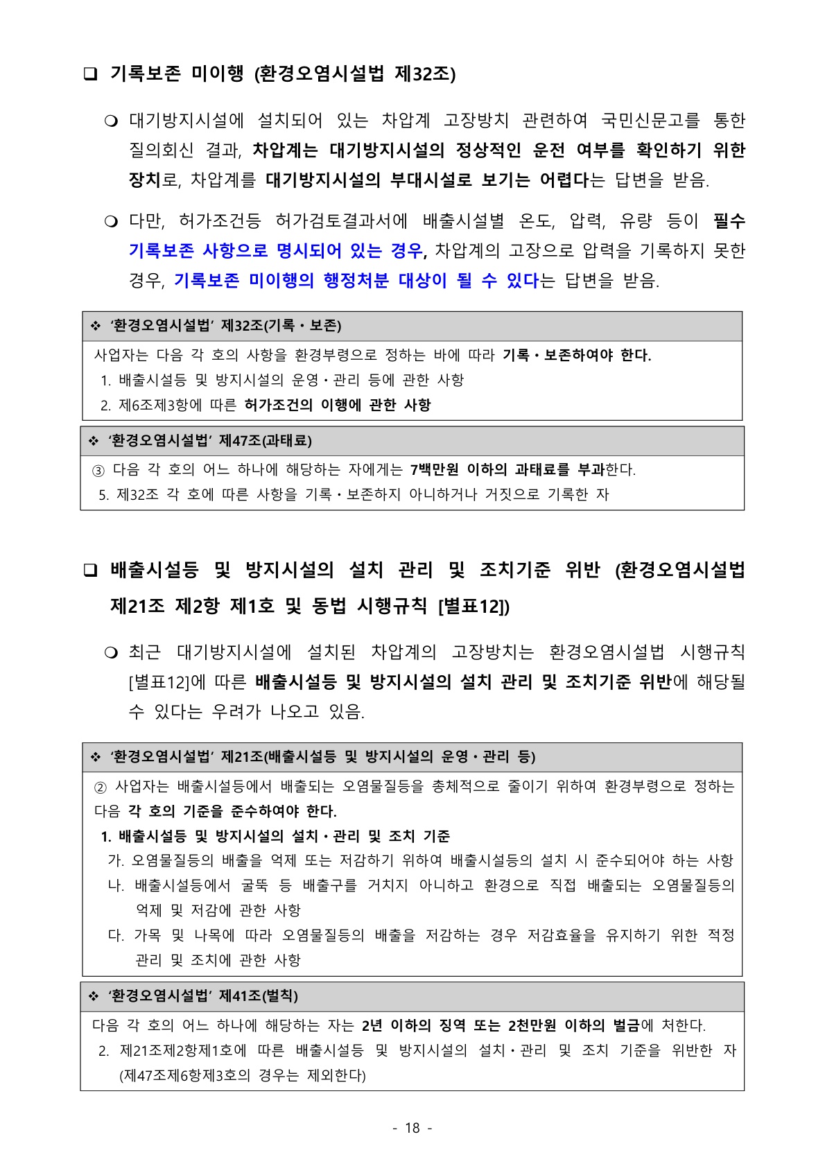 1174_환경오염시설법 (이슈사항) 대기방지시설에 설치된 차압계 고장방치 처벌조항은? 본문