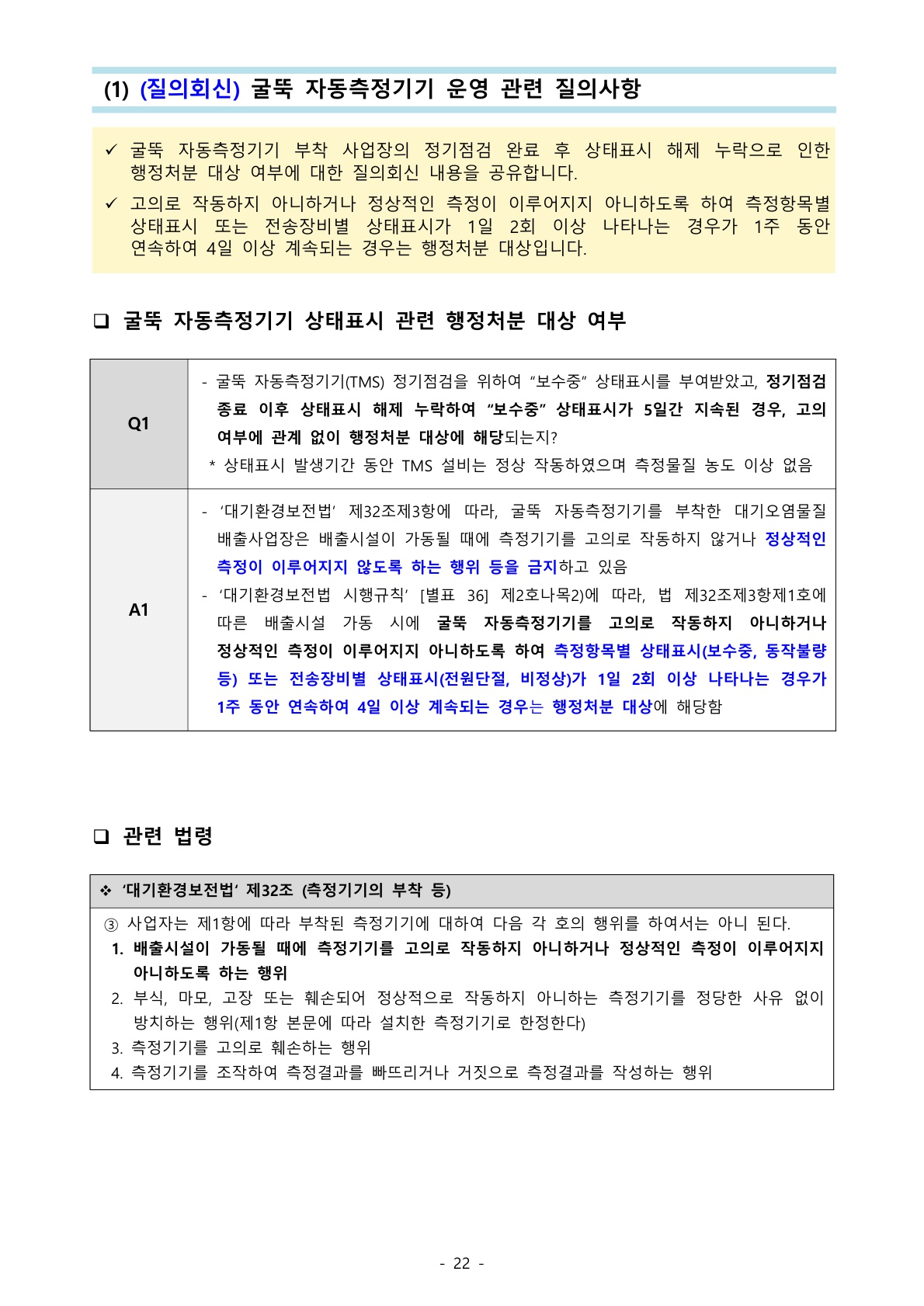 1175_대기환경보전법 (질의회신) 굴뚝 자동측정기기 운영 관련 질의사항 본문