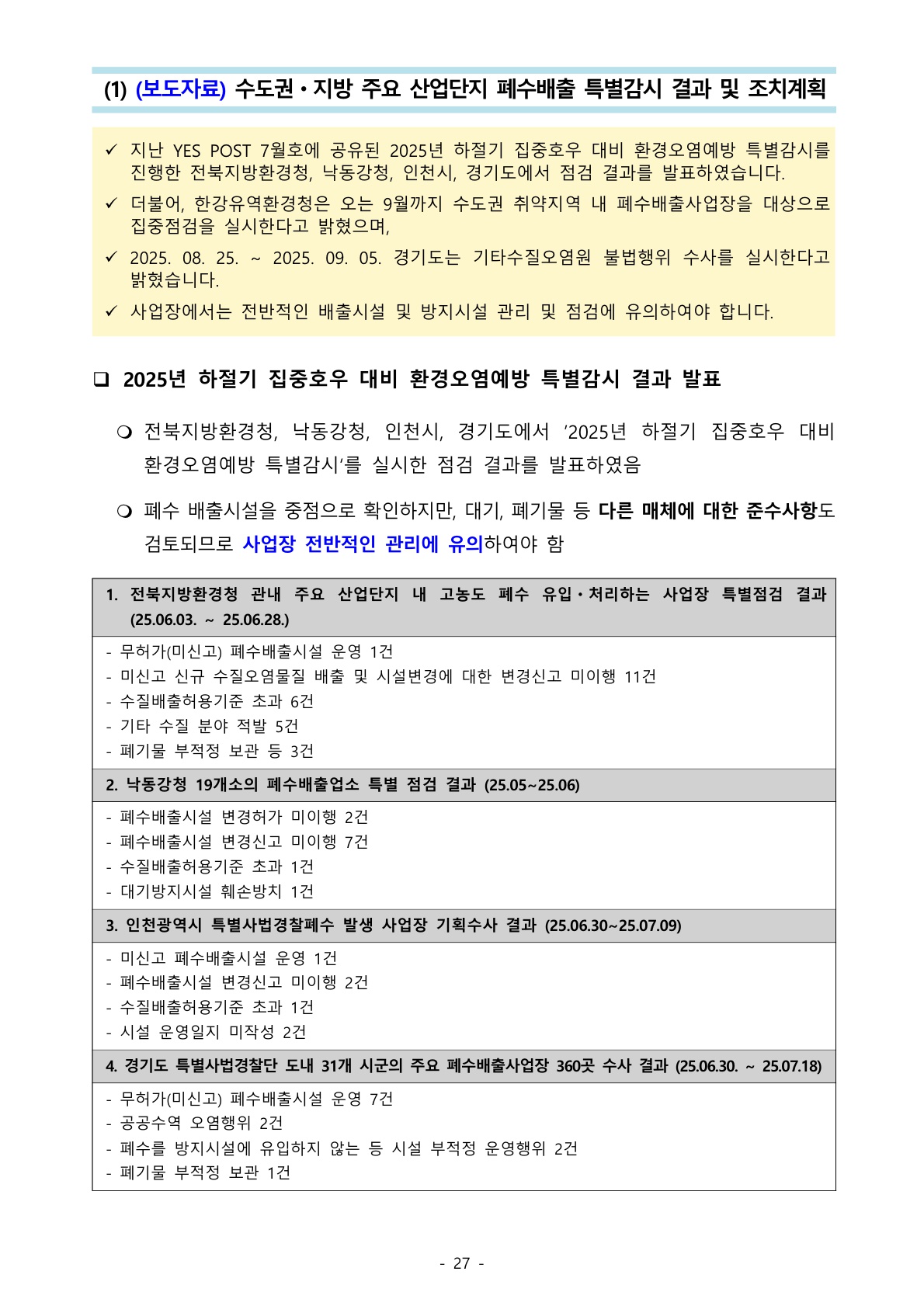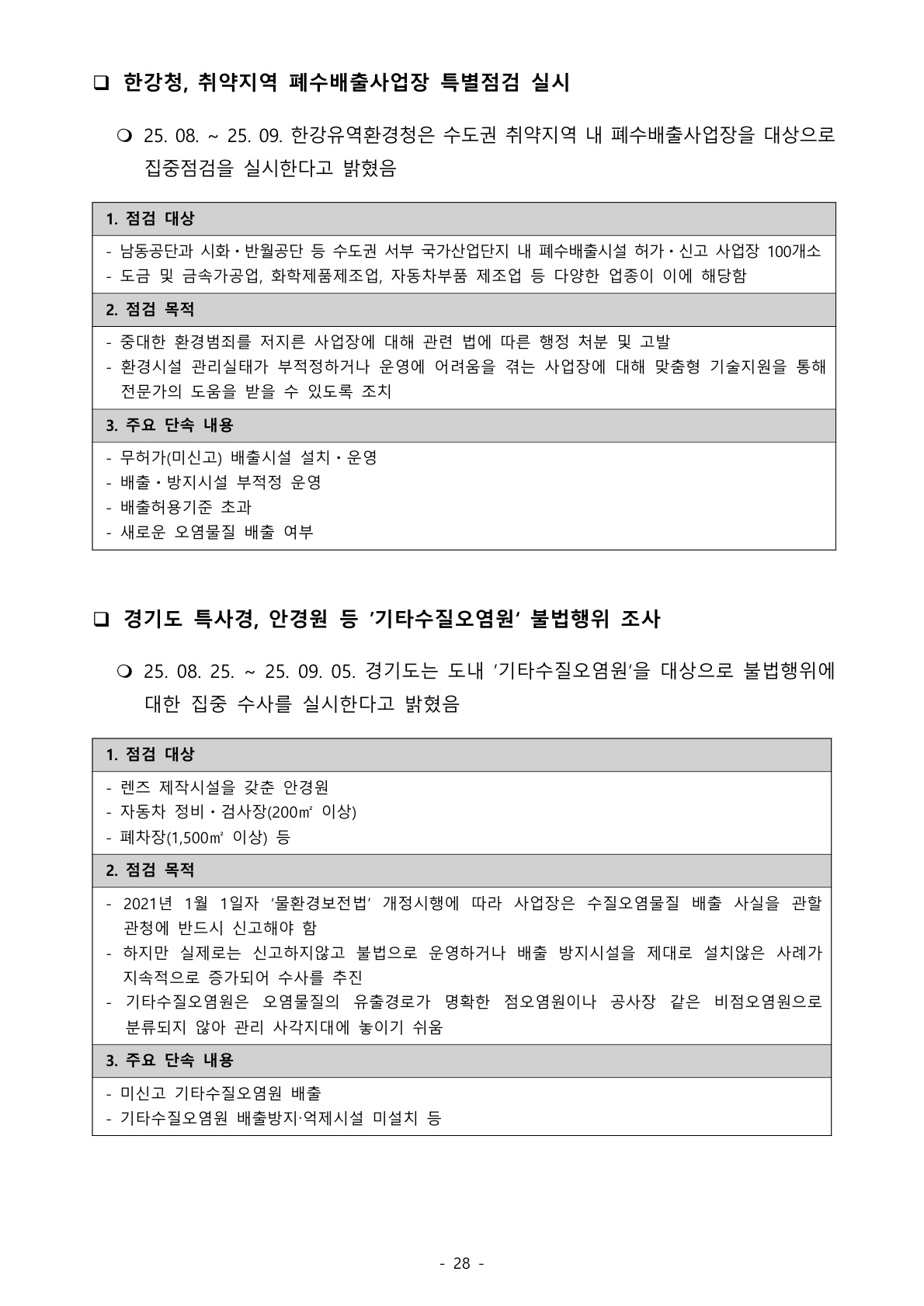 1177_물환경보전법 (보도자료) 수도권·지방 주요 산업단지 폐수배출 특별감시 결과 및 조치계획 본문