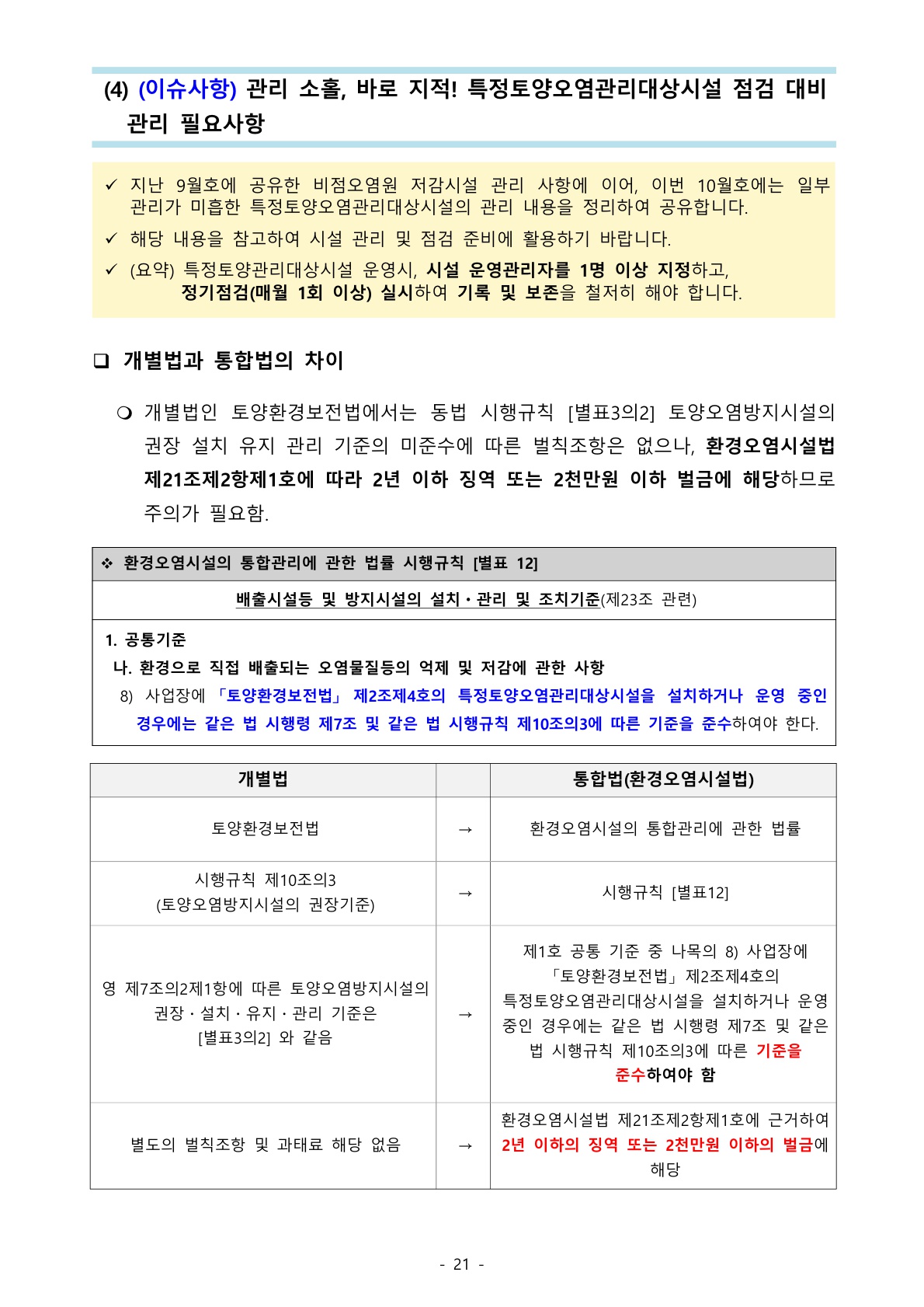 1192_환경오염시설법 (이슈사항) 관리 소홀, 바로 지적! 특정토양오염관리대상시설 점검 대비 관리 필요사항