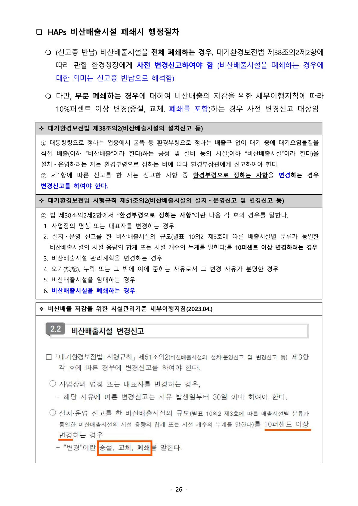 1193_환경오염시설법 (법규해석) HAPs 비산배출시설 가동중지 및 폐쇄시 신고기준 안내 본문