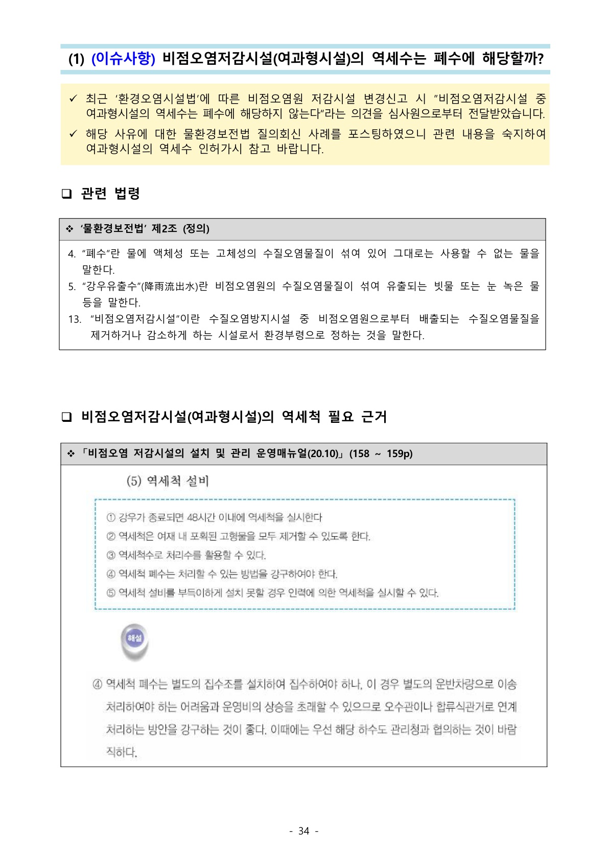 1195_물환경보전법 (이슈사항) 비점오염저감시설(여과형시설)의 역세수는 폐수에 해당할까? 본문