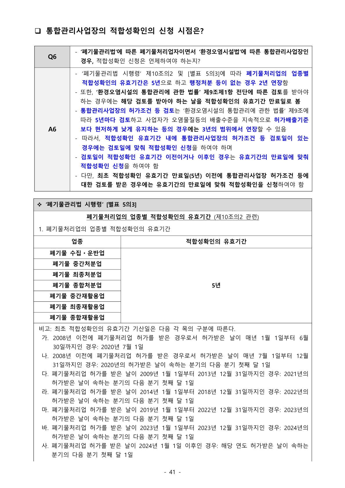 1196_폐기물관리법 (질의회신) 폐기물처리업 적합성확인 제도 질의회신 – 유효기간 관련 본문