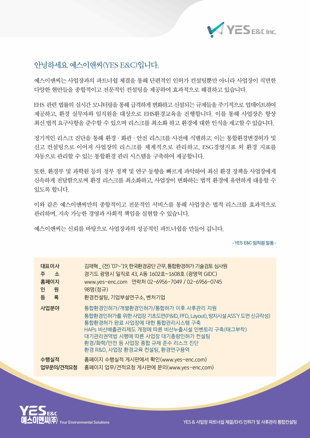 ★ 또한 이 발행물은 일반적인 정보제공만을 목적으로 발행되므로 이에 수록된 내용은 예스이앤씨 주식회사의 공식적인 견해나 구체적인 사안에 관한 법률의견이 아님을 알려드립니다.