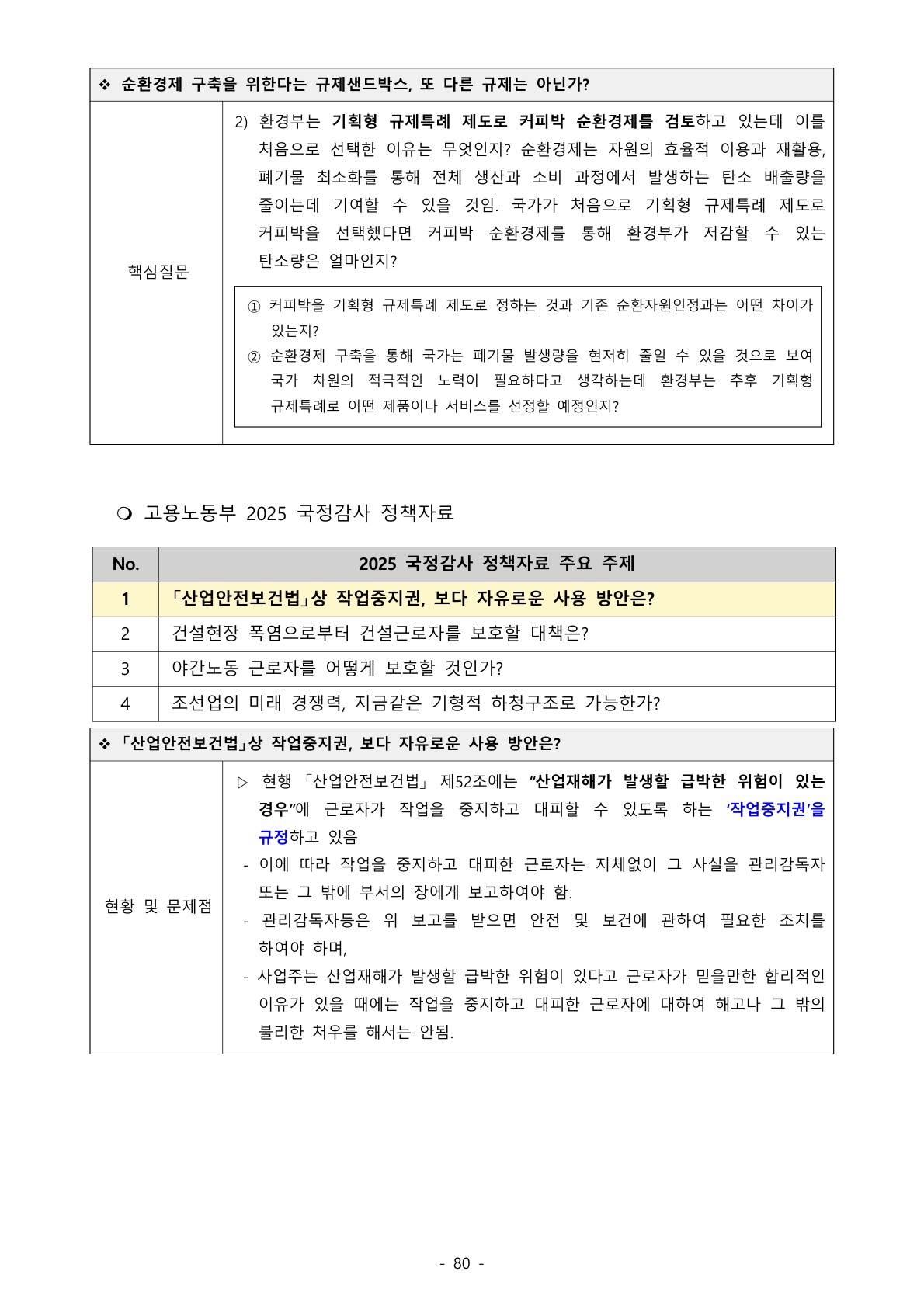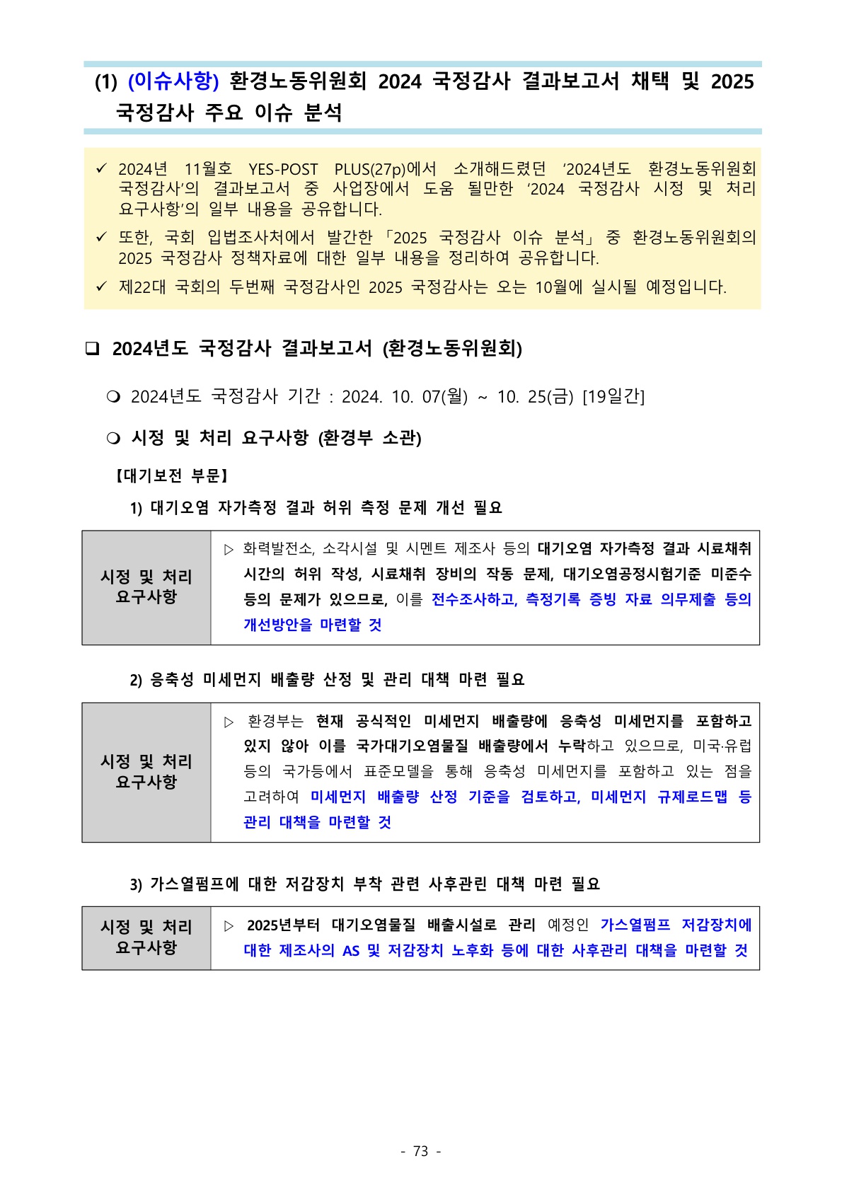 1205_기타 (이슈사항) 환경노동위원회 2024 국정감사 결과보고서 채택 및 2025 국정감사 주요 이슈 분석 본문