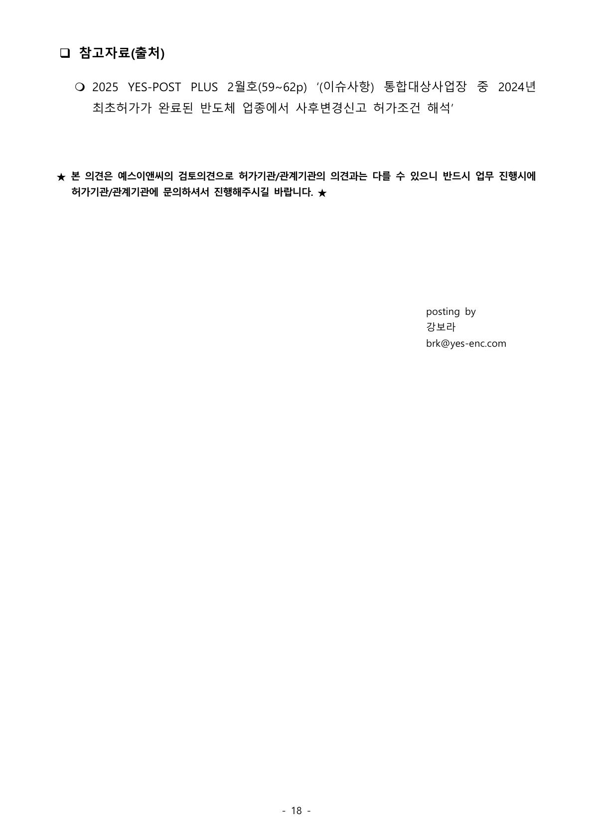 ★ 또한 이 발행물은 일반적인 정보제공만을 목적으로 발행되므로 이에 수록된 내용은 예스이앤씨 주식회사의 공식적인 견해나 구체적인 사안에 관한 법률의견이 아님을 알려드립니다.