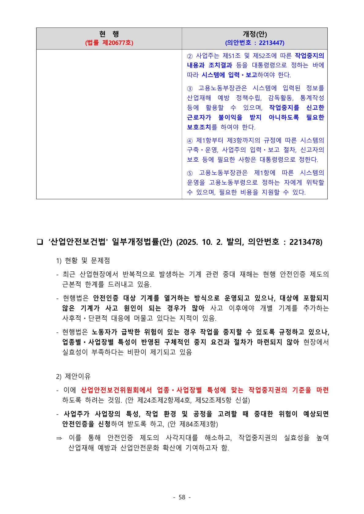 1217_산업안전보건법 (동향조사) ‘산업안전보건법’ 일부개정법률(안) 발의 – 작업중지 기준 마련 및 관리시스템 구축 본문