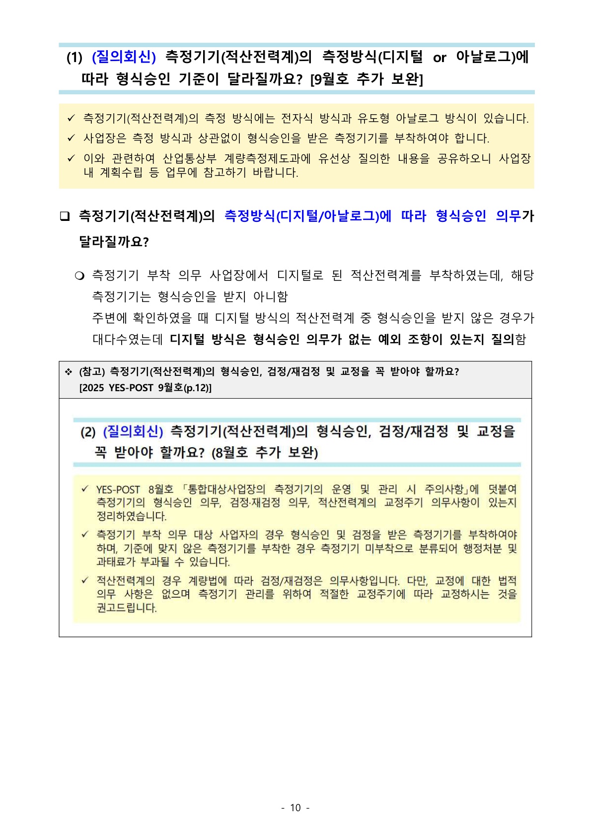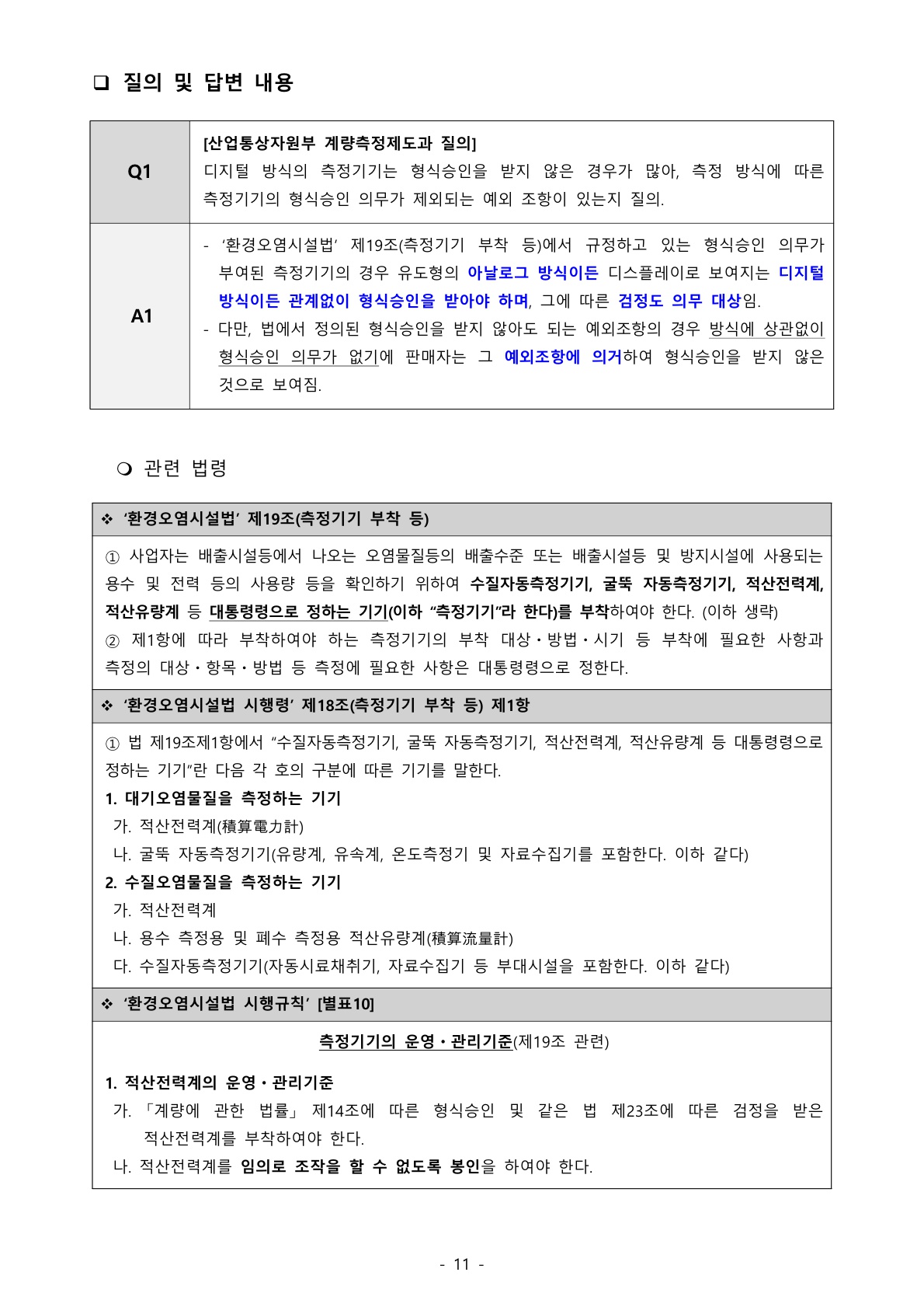 1221_환경오염시설법 (질의회신) 측정기기(적산전력계)의 측정방식(디지털 or 아날로그)에 따라 형식승인 기준이 달라질까요? [9월호 추가 보완] 본문