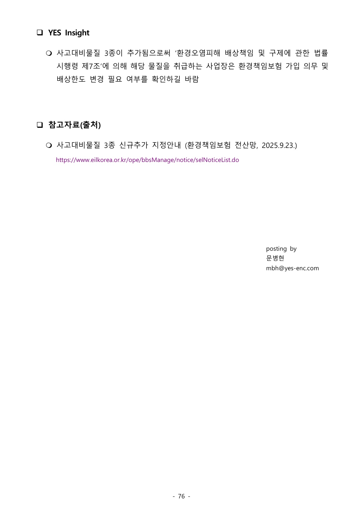 1238_환경오염피해구제법 (이슈사항) 환경책임보험 가입대상 물질 3종 추가 지정 본문