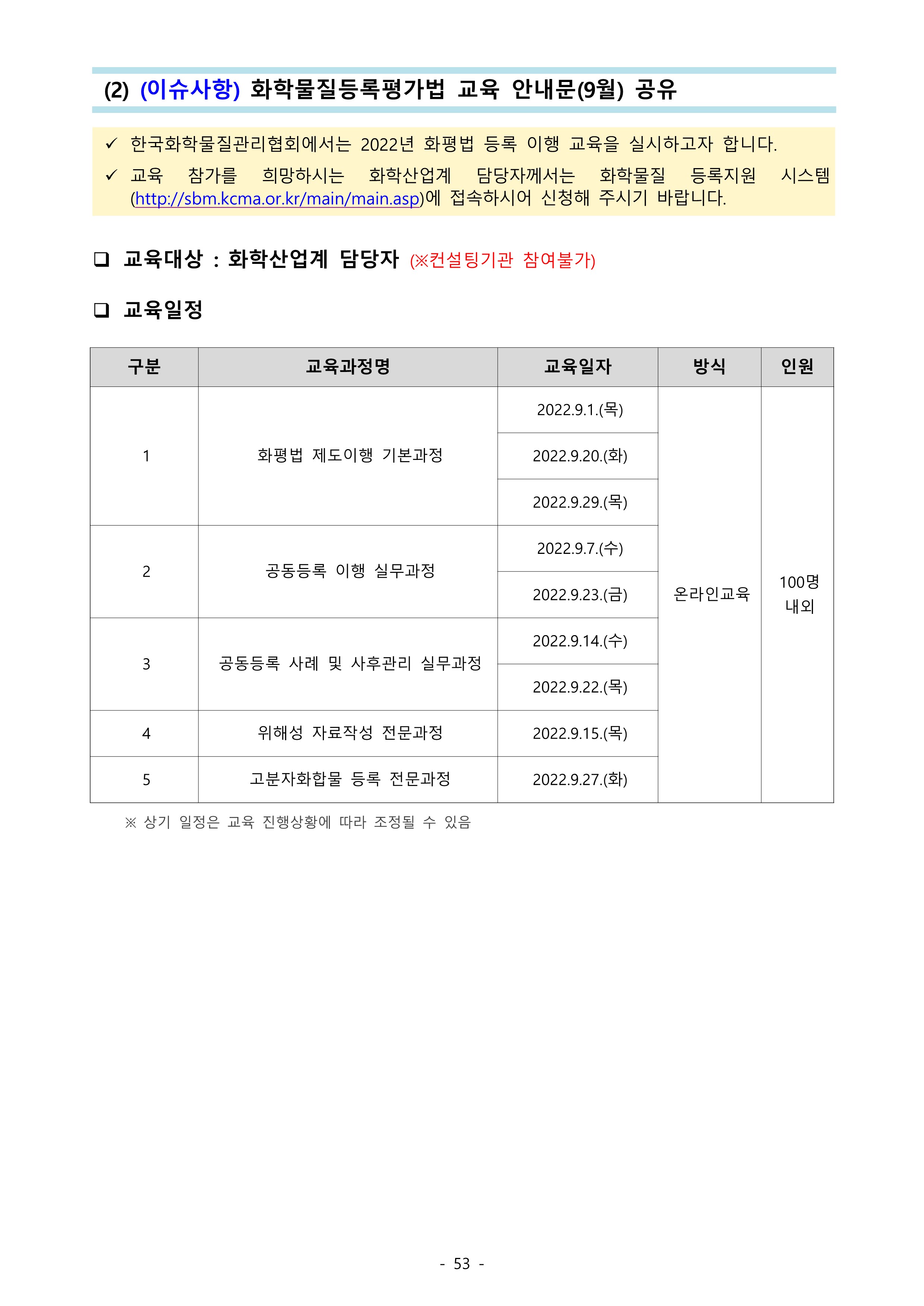 646_화평법 (이슈사항) 화학물질등록평가법 교육 안내문(9월) 공유 본문
