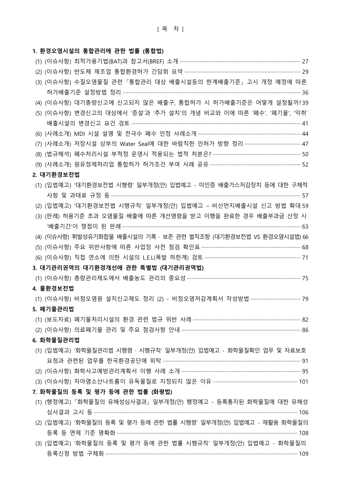 * 이 발행물은 사업장의 환경담당자 분들께 최신 환경정책 동향을 공유하기 위한 목적이며, 발행물의 일부 또는 전체를 이용하실 경우 출처를 명시해야 합니다.